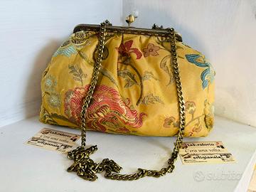 Borsa clic clac pasticcino in tessuto damascato. Interamente realizzata a mano.