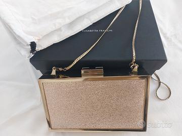 Borsa clutch Elisabetta Franchi (Art. BS - 398 - 9023 - V134 / Col. 610 oro) rigida in glitter dorato con una tracolla a catena rimovibile. Con dust bag.