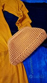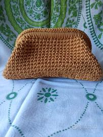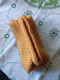 Borsa clutch con chiusura misura 16 cm a molla,in cordino senape lavorata ad uncinetto
