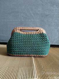 borsa clutch bicolore all'uncinetto