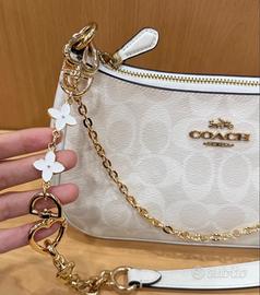Vendo borsa Coach Teri 25 - colore bianco ghiaccio. Logo monogramma classico, pelle di vitello, perfetta per ogni giorno. Piccola e carina, con tracolla lunga e corta (portata a ascella o a tracolla).