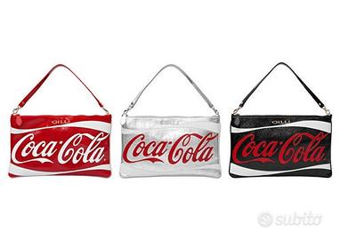 Rara borsa Coca Cola realizzata in pelle da Gilli. Ne sono stati prodotti solo un numero limitato di esemplari. Un oggetto irresistibile per i collezionisti del noto marchio. Ne erano state prodotte tre versioni: una per la Coca cola classica, una per la Coca light e una per la Coca zero. Io ho quella classica.