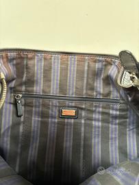 Borsa Coccinelle a spalla con due tasche frontali, tasca interna con cerniera e leggermente usurata.