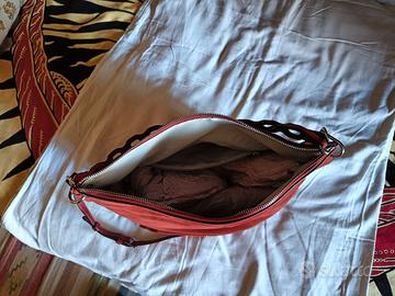 Vendo borsa Coccinelle in camoscio di colore rosso mattone. Possibilità di essere indossata a tracolla o di essere tenuta in mano. Interno molto capiente e dotato di tasche con cerniera. Mai utilizzata