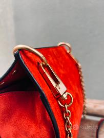 Splendida borsa firmata Coccinelle, realizzata in morbido suede rosso con dettagli in vera pelle e raffinata minuteria dorata. Un accessorio di carattere, perfetto per aggiungere un tocco di eleganza e personalità a qualsiasi look. Il design è impreziosito da borchie decorative e da una pratica tracolla con catena, ideale sia per il giorno che per la sera. 🔹 Caratteristiche: •Brand: Coccinelle •Colore: Rosso •Materiale: Suede e pelle •Hardware: Metalleria dorata •Tracolla con catena regolabile •Chiusura con patta e fibbia •Interno foderato con tasca con zip e logo Coccinelle •Made in Italy 🔹 Condizioni: In ottimo stato, ben conservata e utilizzata con cura. Eventuali lievi segni sono visibili nelle foto. Perfetta per chi cerca un accessorio distintivo, elegante e di qualità. 📦 Spedizione rapida e imballaggio accurato. ✨ Disponibile per ulteriori informazioni o foto.