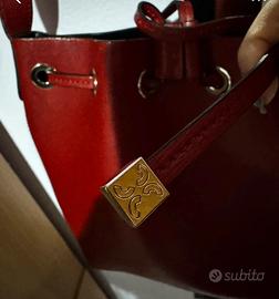 Borsa Coccinelle a secchiello da donna effetto saffiano, colore rosso bordeaux.