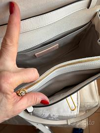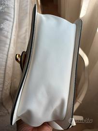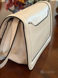 Borsa in pelle COCCINELLE mod. Marvin Twist MEDIUM COLORE: latte di cocco DIMENSIONI: 28x18x11 HARDWARE: oro Patta interna in pelle scamosciata INTERNO BORSA: tessile Tre scomparti: principale, più uno cernierato più uno laterale. Tasca esterna posteriore TRACOLLA regolabile e rimovibile, in pelle Dust bag originale Borsa pari al nuovo Prezzo retail: ca. 180 -200 €