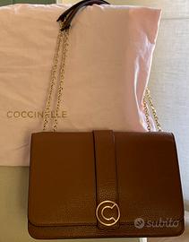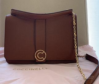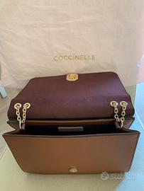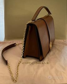 Borsa in pelle colore cuoio, tracolla catena dorata e manici pelle 2 scomparti Lunghezza 22 Altezza 19 Larghezza 9 Brand Coccinelle