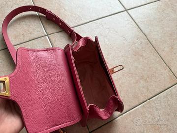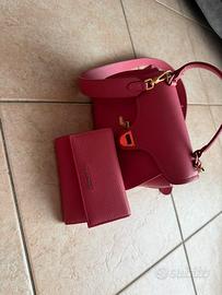 Borsa Coccinelle color rosa corallo in vera pelle tenuta benissimo. Presenta minimi segni di usura sulla chiusura abbinabile al portafoglio dello stesso colore.