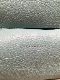 Borsa a mano Coccinelle in pelle colore verde menta interno in tessuto blu. Comoda taschina con cerniera interna. Dimensione Cm 35x30x15 spessore. Completa della sua sacca di custodia in tessuto. Usata poco