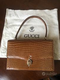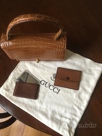 Borsetta anni ‘70 in autentico Nile crocodile. Punzonata Gucci di mia proprietà familiare. Portamonete e specchietto interni originali.