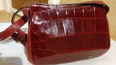 -BORSA a tracolla in vera pelle di coccodrillo originale lucida e pelle liscia, rifiniture eleganti e raffinate firmata GHERARDINI a 2 scomparti capienti a soffietto. Larga 27 cm. Alta 21 cm. con chiusura girevole in acciaio, cerniera interna per cellulare o altro. La borsa è a Varese città ed il costo è di Euro 290.00. Attendo vostre richieste. Rivolgersi a Nella 366.7453705