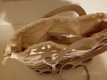 borsa color cipria con secchiello in tessuto
