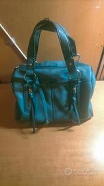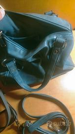 Borsa a mano o a tracolla in similpelle. - Materiale: pelle. - Colore: blu petrolio.