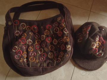 Vendo borsa con berretto abbinato in pura lana di colore marrone con decori marca ALMAPLENA