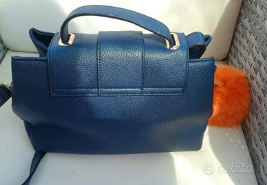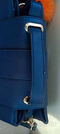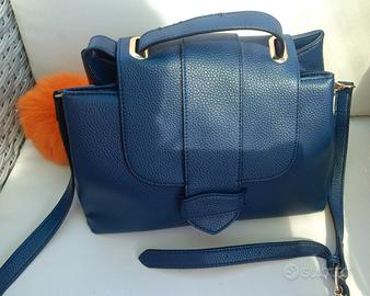 Borsa blu marino con charm arancione Tasca interna Imperfezioni come da foto Ecopelle