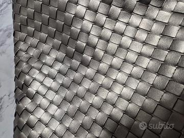 Borsa morbida molto grande più di 40 cm nuova. colore grigio argento motivo intrecciato. interno in tela beige