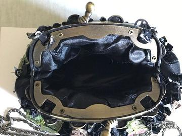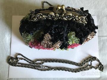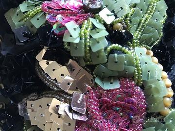 Borsa da sera ricamata con paillettes, dotata di cinghia cm 30 e tracolla cm 115, entrambe rimovibili.