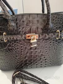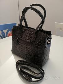 Elegante borsa con tracolla. Particolare punto di colore grigio. Perfetta segni di usura