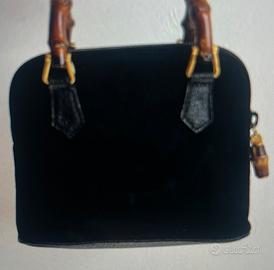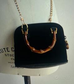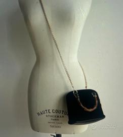 Vendo borsa gucci vintage anni 90 bambo con manico La tracolla a catena sara inclusa ma non e gucci Dust bag originale Nera in camoscio Interno perfetto e pulito Alcuni segni di usura dei manici di bambo su pelle scsmosciata ma ottime confizioni Misure 16.5 cm x altrzza 13.5