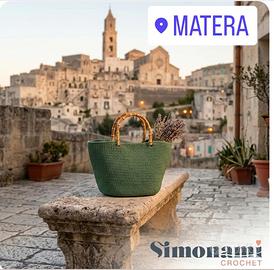Ciao! ✨ Se cerchi un accessorio che non sia la solita borsa di serie, questa è nata proprio tra i Sassi di Matera. L'uncinetto per me è un hobby speciale e dedico molto tempo a ogni singola creazione affinché sia perfetta. L'ho realizzata a mano utilizzando un pregiato cordino Thai verde bosco. È un materiale che amo perché è super resistente, non perde mai la forma e ha una bellissima lucentezza che rende il colore profondo ed elegante. I manici in vero bamboo completano lo stile, rendendola perfetta per ogni occasione. Perché sceglierla: Passione artigianale: Un pezzo unico, creato punto dopo punto con cura estrema. Materiale Premium: Il cordino Thai garantisce una struttura solida e una trama fitta e ordinata. Dettagli naturali: Manici in bamboo per un tocco chic e senza tempo. Le misure (circa): Larghezza: 35 cm Altezza: 25 cm (esclusi i manici) È nuova, appena terminata e pronta per essere indossata. Se vuoi farti un regalo o cerchi un pensiero unico fatto col cuore, scrivimi pure! 😊