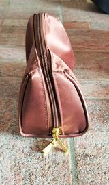 Vendo borsa cosmetica Lierac in raso marrone e pochette Intesa in tessuto nero.