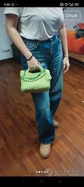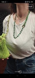 borsa in cotone realizzata a mano con tracolla in metallo e fodera fantasia fondo in ecopelle.. abbinata collana in scalatura di colore realizzata artigianalmente con cristalli di vetro sfaccettato e pietre dure