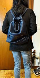 borsa coveri collection in similpelle blu morbidissima portabile a spalla o a zainetto larghezza cm 38 altezza cm 32 profondita cm 9