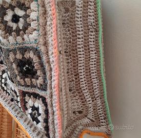 Borsa con manici in bamboo, interno in juta ed esterno lavorato all'uncinetto interamente a mano. NUOVA 💝