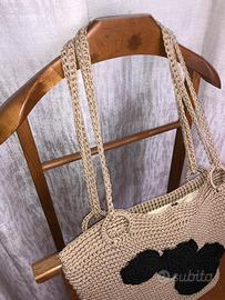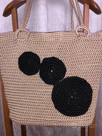 borsa crochet realizzata a mano con tecnica all'uncinetto colore beige e nero - Perfetta per tutti i giorni o anche per la spiaggia ๐๏ธ ๐ - Presenta un design unico con dettagli in nero motivo vertuo ๐ - Realizzata in cordino ricamato ๐งถ -fodera interna in tessuto -chiusura bottone a scatto -dettaglio: manico con anelli -Misure: altezza 30 cm larghezza 32 cm Spessore 9,5 cm Lunghezza manico 30 cm SPEDIZIONE 24/48H ๐ฆ ๐ SCONTI SUI SET! ๐ฅณ UTILIZZA QUESTO ARTICOLO IN UN SET E OTTIENI FINO AL 20% DI SCONTO! SEGUI IL MIO PROFILO ๐ SCRIVIMI PAOLOM10 ๐ฌ E AVRAI IL 10% DI SCONTO AGGIUNTIVO SU TUTTI GLI ARTICOLI! CHE ASPETTI ๐ #borsa #sac #handmade #crochet #fattoamano #uncinetto #tasche #bag #bolsa #madeinitaly #homemade