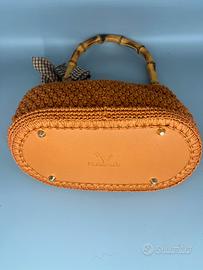 Chiusura clic clac con manico in bambu vintage Fondo rigido e fodera in seta