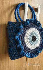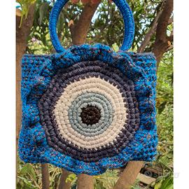 Borsa occhio turco realizzata a mano con uncinetto brillantini "chiusura strappo Misure 26×24 #borsauncinetto#occhioturco#fattaamano#