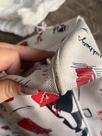 Come da titolo vendo borsa Cromia. La borsa è un bauletto di grandi dimensioni dotata comunque di tracolla e portafoglio coordinato. Si oresenta con diversi segni di usura sul dondo e sui manici così cokme da foro.
