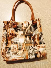 borsa sulle tonalità del marrone. altezza 30 cm (senza manici) base 31 profondità 12. usata poco.