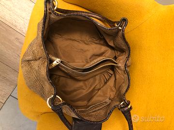 Borsa A spalla stampa(occhio di pernice) realizzatain tessuto stampato con dettagli in pelle di vitello,fodera interna in jacquard