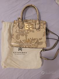 Borsa in pelle dj vitello lavorata e ricamata a mano di CUOIERIA FIORENTINA ORIGINALE usata pochissime volte, ancora in custodia. Prezzo su sito 298 euro