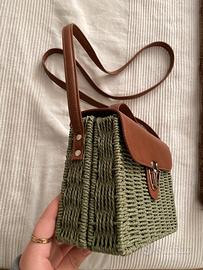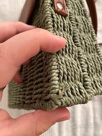Borsa a tracolla con dettagli in cuoio e trama in rafia. - Manico superiore. - Chiusura a girello. - Unico difetto presente nell’ultima foto.
