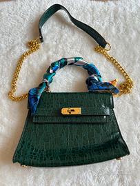 Il colore verde scuro è raffinato e intramontabile, con dettagli in metallo dorato per un tocco di lusso.