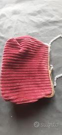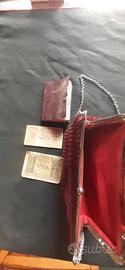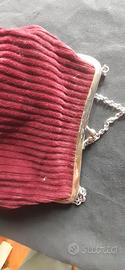 ORIGINALISSIMA POCHETTE IN VELLUTO A COSTE BORDEAUX CON CHIUSURA A BACIO E CATENELLA ARGENTATA.