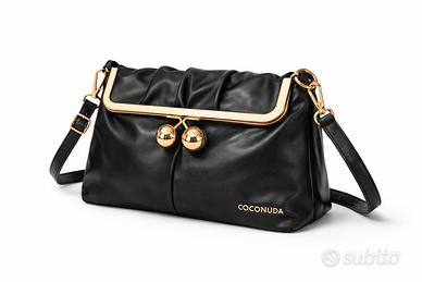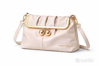 Tracolla Coconuda con chiusura a clic clac. Dim 29 x22 x12 cm. Disponibile Nera, beige e rosa, gialla e bianca