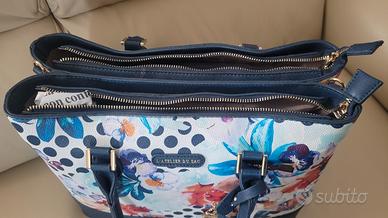 Borsa da donna in pelle Colore blu Fantasia fiori Marca L'Atelier du Sac Nuova mai usata Dim. 35x30x 18 circa