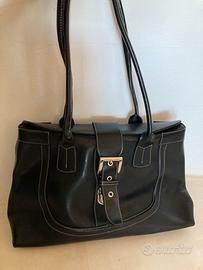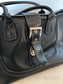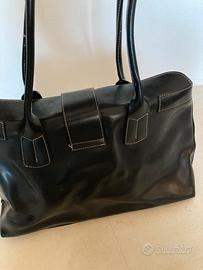 Borsain vera pelle color nero Borgi in acciaio intorno in cucitura bianco Made in italy