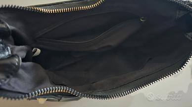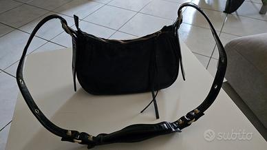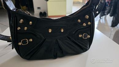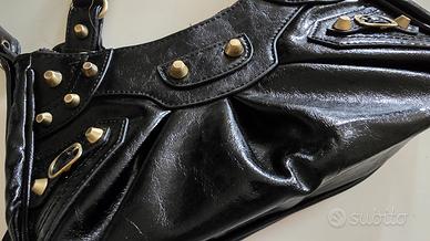 Vendo borsa da donna in similpelle nera,con borchie dorate,misura 26x13x7,usata 3 volte,la tracolla si può allungare o accorciare a piacimento.