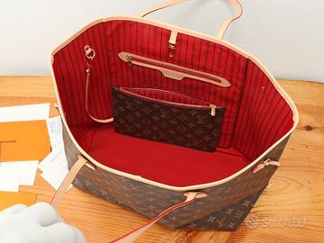 Nota: Le immagini sono foto reali delle borse; la qualità delle borse che riceverete sarà esattamente la stessa delle foto! Ho anche altre borse Louis Vuitton, LV e Gucci; non esitate a contattarmi se siete interessati! La borsa Neverfull Large Tote è realizzata in morbida tela Monogram con profili in pelle di vitello e presenta una vivace fodera in tessuto, il tutto in un design spazioso. Le tracolle laterali offrono diversi look a seconda che siano strette o allentate. I manici sottili sono comodi da portare a spalla o al gomito, e la tasca con zip removibile può essere utilizzata come pochette o tasca a mano. Modello: M40991 (Monogram Rosso) Dimensioni: 39 x 32 x 19 cm (Lunghezza x Altezza x Larghezza)