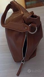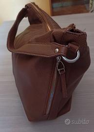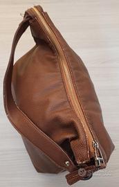 Borsa a tracolla da donna in pelle marrone chiaro in buone condizioni, con n. 4 tasche, una laterale con cerniera, una interna con cerniera e due tasche aperte, marca Nero Giardini.