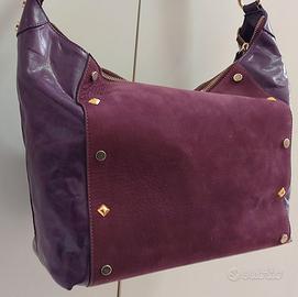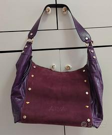Borsa da donna vera pelle colore viola firmata. Molto bella. Come nuova. Se interessati lasciate il vostro numero. No scocciatori. No spedizione.