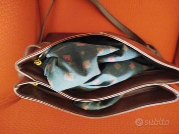 borsa anni 70 in pelle,manici a tracolla,all interno con doppie tasche e fodera in stoffa colorata , non presenta strappi o scalfiture.
