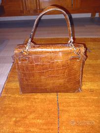 borsa elegante da donna in pelle stampata color marrone i particolari in metallo sono perfetti.
