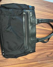 Borsa da lavoro Piquadro in tessuto tecnico e pelle. - Dettagli in pelle. - Zip frontale. - Manici in pelle.