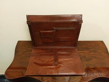 Borsa professionale in pelle, adatta sia per uomo che donna, colore marrone, munita di divisori interni con numerosi scomparti uno dei quali chiuso con cerniera, ampie tasche interne. Chiusura a spina con chiave, manico in pelle.